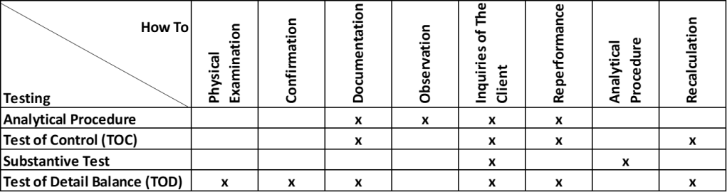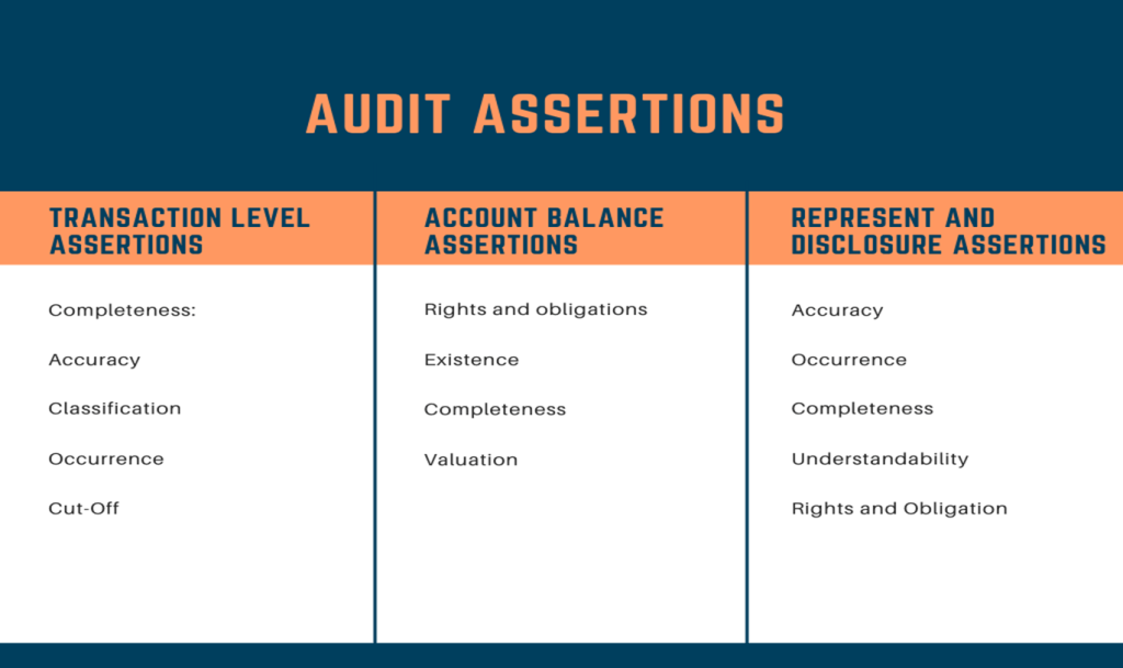 In conducting audits and/or audit procedures, it is necessary to pay attention to audit assertions which are divided into 3 parts: transactions, balances, and presentation/disclosures.